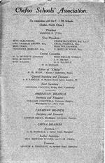 The Chefoo Schools’ Association was formed just five years ago, and had for its aim, First—Unity or the bringing together of all Boys and Girls, who had once the privilege of passing through these Schools, into one good fellowship to be fostered whenever possible by social gatherings, or failing this, to keep the individual members in touch...”