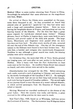 On arrival at Havre the Chinks were assembled on the quay, some three thousand in all. As they scrambled on board they uttered cries of ‘good-i-la’l ‘good-i-la’! for they had never seen such a large and commodious steamer before. Soon we were leaving the hospitable shores of France, and launchingout into the heaving bosom of the Atlantic. For the first few days a great peace reigned, for mal-de-mer claimed many victims! Chinese phrases, learnt at Chefoo in bygone days, soon came back to one’s memory, and proved useful at the daily sick parade. The large liners, Mauretania and Imperator were passed when we were two days out from land. No other event, worthy of note, occurred till near the end of this Atlantic trip. One day all the emergency rations in the lifeboats were found to have been broken into. Not only that, a hatchet and compass...”