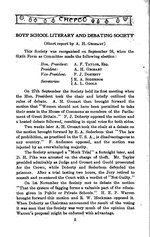 On 1st November the Society met to debate the motion “That the system of fagging forms a valuable part of the education given in Public or Private Schools/’ H. E. P. Warren brought forward this motion and R. W. Hockman opposed it. When Doherty as Chairman announced the result of the voting it was seen that the-Society was very much of the opinion that Warren’s proposal might be enforced with advantage.