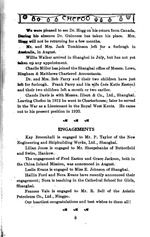 Kay Broomhall is engaged to Mr. P. Taylor of the New Engineering and Shipbuilding Works, Ltd., Shanghai.