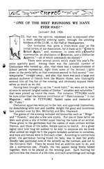 “...Our invitation was quite a brain-wave play on the initial letters of our Association, for.it bade us to “ Come to School Again,” and, moreover, to come with a Cheerful countenance, an abundance of Sixpences, and a Chefuscian Appetite,”—all of which commands we obeyed !