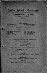 A new method has been adopted for the purpose of the C.S.A. getting into touch with Chefooites who are on the point of leaving Chefoo. A printed form is given each of those leaving, on which he or she, is asked to answer questions with regard to future destination, address, future plahs, etc. These papers are then sent by the C.S.A. Secretary at Chefoo to the respective secretaries in England, Canada, Australia or China, whither those leaving are destined. The result has been good, since we have been able to get into touch with several on arrival in England who would otherwise probably have never heard of the C.S.A., and would ultimately have drifted away from Chefoo.