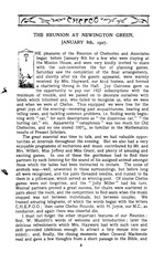 I must not forget the other important features of our Reunion : first, W. Mudditt’s words of welcome and introduction ; later the delicious refreshments which Mrs. Hayward had with such care and skill provided (delicious enough to attract...”