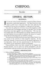 The purpose of the General Section of the magazine is to report news of general interest to all branches and in particular news of the Chefoo Schools. In this respect we are indebted to the Chefusian for a considerable amount of “ copy,” which has been reprinted in our pages.