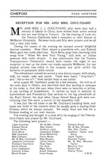 MR. AND MRS. J- J- COULTHARD, after more than half a century of labour in China, have retired from active service and are now living in Toronto. On the evening of June 1st, the Toronto Chefooites held a reception in their honour at McMaster University. Between forty and fifty were present and we al! had a very jolly time.