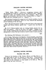 During the evening an electric clock was presented to Mrs. Hayward as a token of our gratitude for all that she has done for us in the past at our Winter Reunions. A cheque for the balance of the funds contributed has also been sent her, with the request that she will purchase something else for herself from us.
