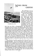 have been too bitter a disappointment. On Wednesday the Coronation Service was held in the Memorial Hall, whose capacity is greater than that of either of the Churches. After the service we all went over to the B.S. flagstaff, where a Naval Flag Party were prepared to break the flag at the given signal, while a detachment of sailors and marines stood at the Royal Salute. The Danae fired the salute and we all sang ‘ God Save the King.’ It was a most impressive service and ceremony, and was much enhanced by the smartness of our own Ranger and Guide Companies...”