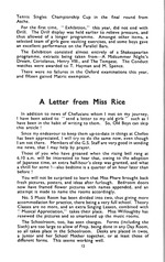 Kathleen Rouse and T. Hayman won the Inter-House Tennis Cup, presented by the C.S.A., for Livingstone-Slessor, gaining 7 points. Carey-Carmichael were second with 6 points. Kidder won the