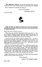 “...Summer Reunion of some form or another, we feel, will be welcomed by some members in the London area. In order to avoid making elaborate arrangements in these uncertain days we propose to go to Chessington Zoo on Saturday afternoon, July 13th. Space forbids giving details of this attractive 'rendezvous, but full particulars can be obtained at any railway station near London. Suffice to say that there is plenty of fun to be had there, wet or fine, and we can have tea together and the tonic of a Chefoo Chat.