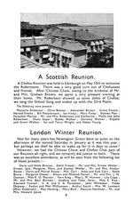 A Chefoo Reunion was held in Edinburgh on May 10th to welcome the Robertsons. There was a very good turn out of Chefusians and friends. After Chinese Chow, owing to the kindness of Mr. and Mrs. Graham Brown, we spent a very pleasant evening at their home. Mr. Robertson showed us some slides of Chefoo, we sang the School Song and ended up with the 23rd Psalm.