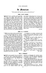 the Lord. Undoubtedly the experiences in the internment camp at Weishien made big demands on her physical strength and since the death of Mr. Faers in 1951 there has been a steady physical decline. At midday on Monday, January 5th, aged 83, while on holiday at Winchester she heard the voice saying, “ The Master is come and calleth for thee,” and alone in the quietness of her room the spirit of Lucy Faers went in to see the Lord she had loved and served in China and in England these many years.
