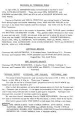 “...and MARGARET WELLER, MISS A. K. WILLOUGHBY. AUSTRALIA BRANCH Chairman: MR. ALEX ENTWISTLE, 21 Nicholson Street, North Balwyn, E. 9. , Victoria. Secretary and Treasurer: MRS. FAITH LEDGARD (nee HUTTON) 44 Carlton Crescent, Kogarah Bay, New South Wales. NEW ZEALAND BRANCH Chairman: MR. FRANK RICHARDSON, 11 Quebec Road, Milford, Auckland, N. Secretary and Treasurer: MRS. MARY HOWIE (nee PREEDY), 4 Crescent Road, Epsom, Auckland. "REUNION REPORT AUCKLAND, NEW ZEALAND, SEPTEMBER, 1966" The annual Chefoo Reunion this year was held at the home of DR. & MRS. H. HOWIE, Epsom, on July 30th at 5. 45 p. m. There were 17 present. This year we met for a "Chinese Chow" prepared at home by MARY HOWIE and helpers and was much enjoyed by all.' After we had duly partaken we had a short business session at which the President and -Sec. -Treasurer were re-elected. It was again recommended we have only 1 magazine a year to help rising costs and also to ensure a good quality magazine. Apologies were received...”