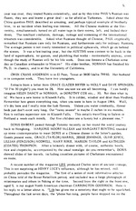 “...6. street, in the corridor, even in church to comment on the picture. Just now a fellow in the men's washroom I never saw before, did the same. And the tennis and swimming club to which we belong has posted the thing on the bulletin board, with a big red circle around my name. I trust the Chefoo Mag, finds it too expensive to print. I must give HARRY LUCE a piece of my mind, as a one-time sub-prefect should to a onetime 2nd former - I was five at the time. Incidentally the photograph first appeared in Arthur H. Smith's China in Convulsion, along with a finding list. For some reason unknown to me the Fenn family was not brought into the group; otherwise another prospective Chefoo boy (HENRY) would have been pictured. " CARRINGTON adds "The only personal news I can give you is that another book has appeared for which I am largely responsible: Western and Central Asians in China under the Mongols, by Ch'en Yuan, tr. and annot. by Ch'ien Hsing-Hai and L. C. G. (Carrington) Mr. Ch'ien had to...”
