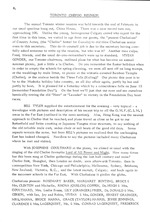 The annual Toronto winter reunion was held towards the end of February in our usual spacious hang out, China House. There was a near record turn out, approaching 100. Unlike the young, homogenous Calgary crowd who report for the first time in this issue, we varied in age from our guests, the "present Chefusians" of Country Acres, (the "Chefoo" hostel for Canada) to old time Chefusians senior even to this secretary. This do-it-yourself job is due to the secretary having carefully asked someone to write up the reunion, but who was it? Another mea culpa. Food, friends, and the usual do-you-remember's were up to standard. VIVIAN GONDER, our Toronto chairman, outlined plans for what has become an annual summer picnic, just a little a la Chefoo. Do you remember the Easter holidays when in order to empty the schools for spring cleaning, we were all sent off on long tramps, or the weaklings by mule litter, to picnic at the wistaria covered Bamboo Temple (Chefoo), or the...”