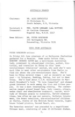 "I met BRUCE McINTYRE recently. He left Chefoo in 1929. He is a Baptist Minister lecturing temporarily at Victoria Baptist Bible College. He showed me photos of Chefoo Prize Giving in the Memorial Hall.