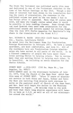 "Having been officially made Associate Professor Emeritus by Roberts Wesleyan College (Rochester, N.Y.) in 1972, I am now teaching Elementary and Intermediate Chinese at the nearby State University College at Brockport. Classes are quite small, but there seems to be considerable interest on the part of those who have elected Chinese. Although I am, to paraphrase Ralph Rackstaw, a 'lowly tutor', and not on the faculty, my work is treated like the other language courses — and I am having a wonderful time in these post-retirement years. The last CHEFOO MAG was a real treasurehouse of memories. It's great that so many of us are still around and active. 'Surely goodness and mercy have followed us all our days..." And when birthdays are remembered by the C.S...”