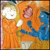 Text and illustrations from two large volumes in the possession of Pradyumna Kiśor Dev Goswami from the Bhagavadgītā and Bhāgavatapurāṇa.