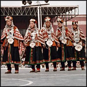Dancers from the Tibetan border region of Himachal Pradesh, probably Nati dancers