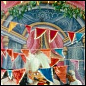 Nṛsiṃha emerging onto a stage set up for a Līlā performed in Gopīnāth Bazaar