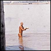 Viṣṇusvāmī brahmacārī at Viśrām Ghāṭ performing libation (tarpaṇa) to the sun